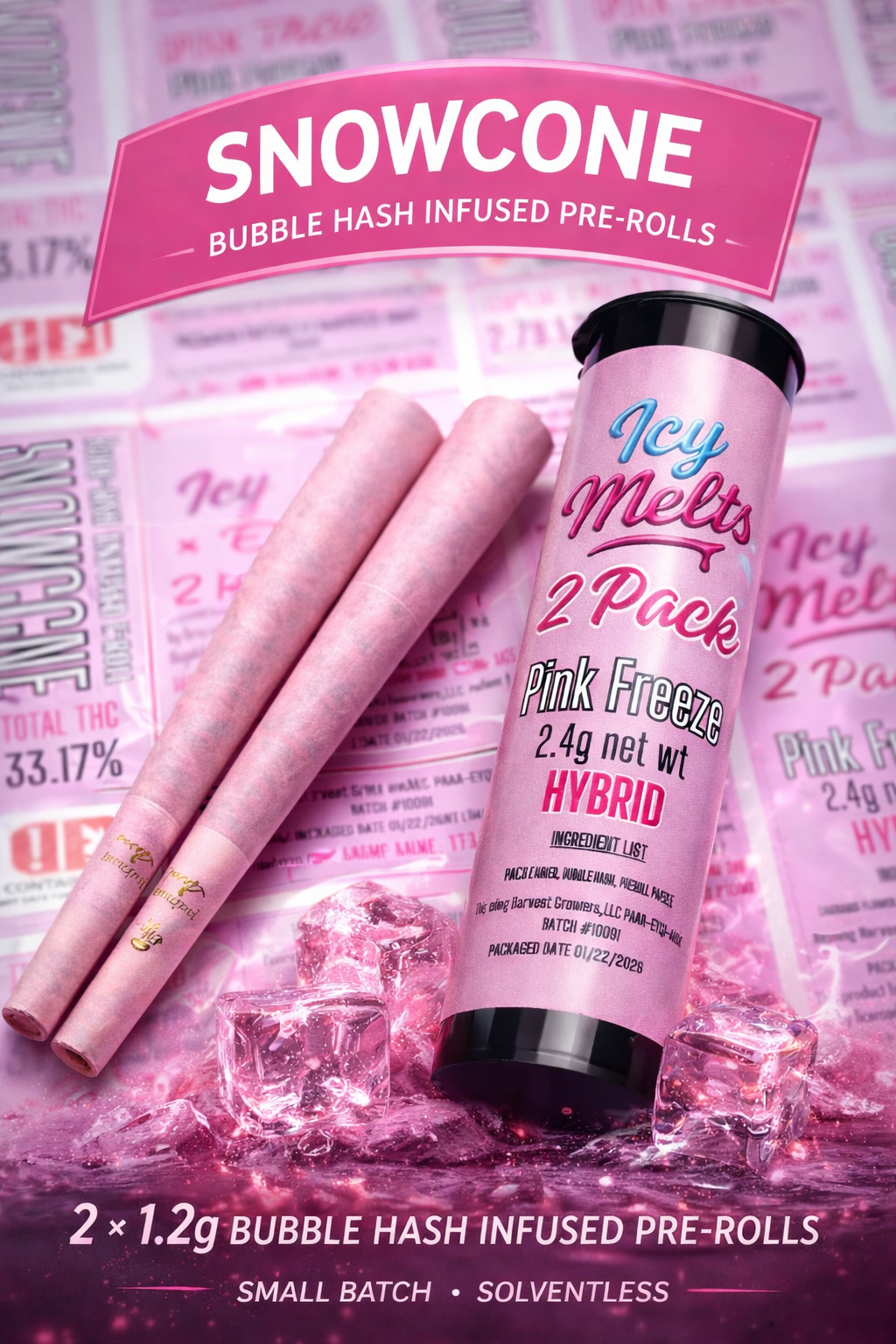 Icy Melts | Snowcone 2 Pack | Hybrid Blend | Pink Freeze